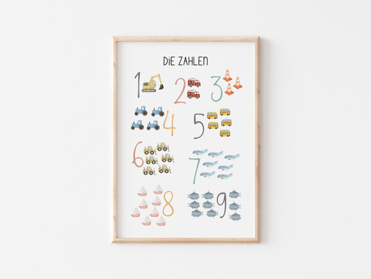 ABC und Zahlenposter Kinderzimmer | Alphabet Poster | Buchstaben | Zahlen von 1 bis 9