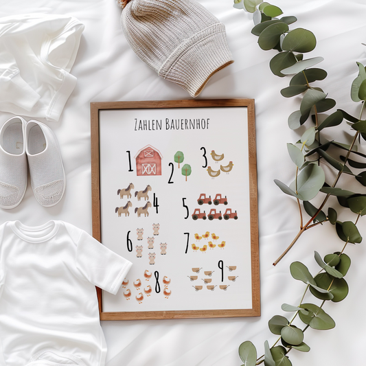 Counting Farm Kids Room Poster | Learning Poster with Farm Animals | Counting for Children | Farm Decor