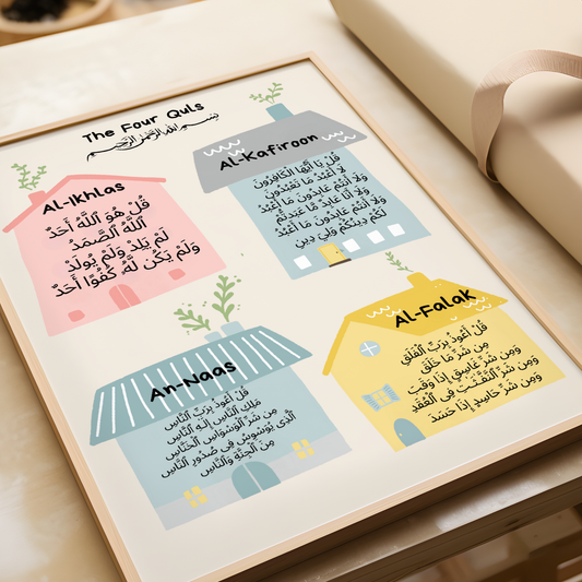 Elegant 4 Qul Islamic Wall Art – Arabic Calligraphy Poster, Quran Verses, Modern Islamic Decor
