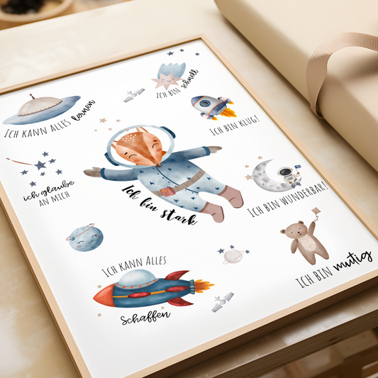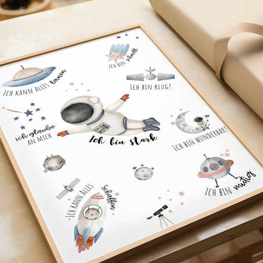 Inspirational Affirmation Poster for Kids | German Affirmation | Space Themed Positive Wall Art