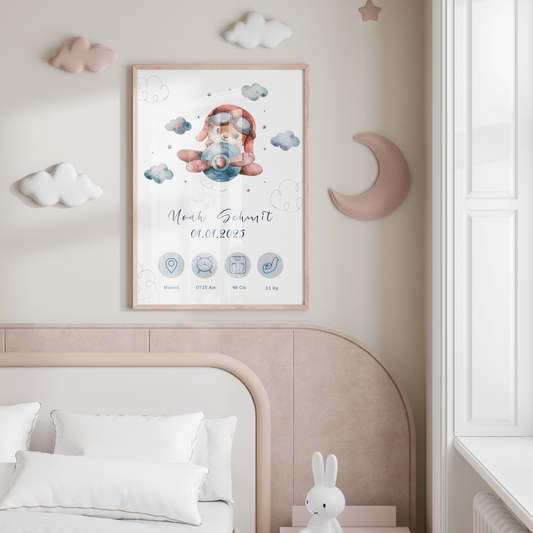 Personalised Baby Birth Chart with Cute Baby Bear