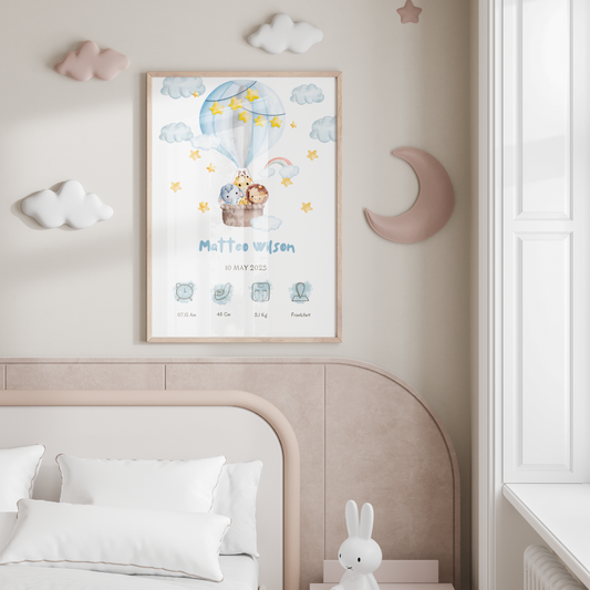 Personalised Baby Birth Chart | Birth Announcement | Blue