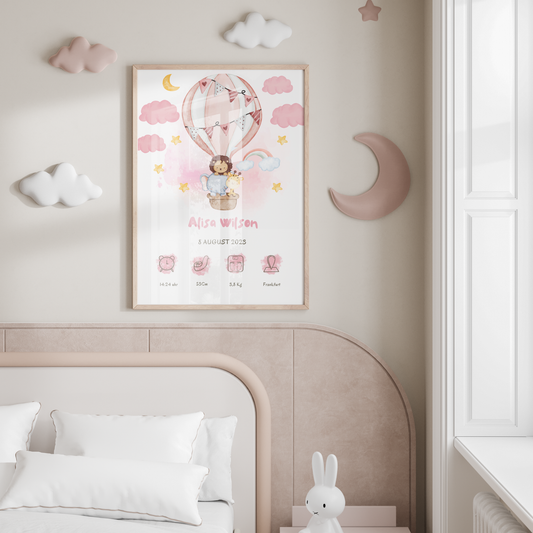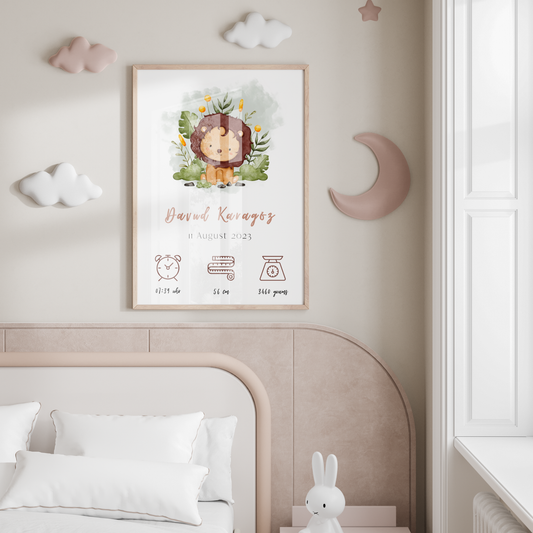 Personalised Baby Birth Chart | Birth Announcement | Lion