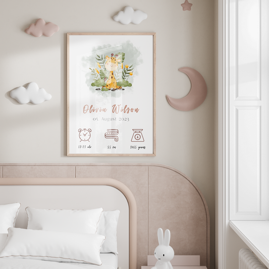 Personalised Baby Birth Chart | Baby Birth Announcement | Giraffe