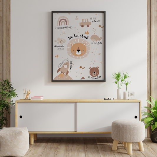 Inspirational Affirmation Poster for Kids | German Affirmation | Space Themed Positive Wall Art