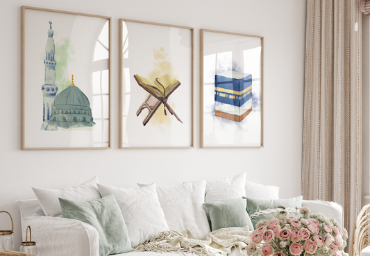 Set of Kabah, Quran & Masjid al Nabvi Poster
