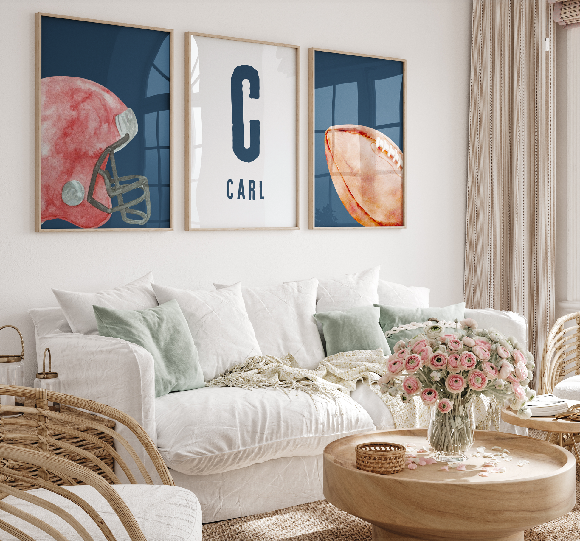 Add a sporty touch to your child's room with this vibrant Football Helmet Watercolor Wall Art, featuring a hand-painted design that captures the excitement of the game. Perfect for boys who love football, this unique piece adds energy and color to any sports-themed bedroom, nursery, or playroom.